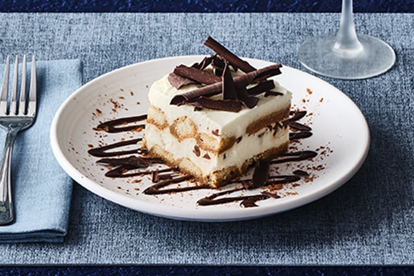 TiramisùLady fingers dipped in liqueur-laced espresso, layered with sweetened mascarpone, Myer’s Rum and chocolate shavings