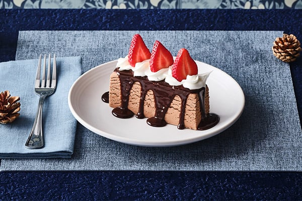 Chocolate SemifreddoSilky, semi-frozen Italian chocolate mousse, sliced and topped with whipped cream, chocolate sauce and fresh strawberries